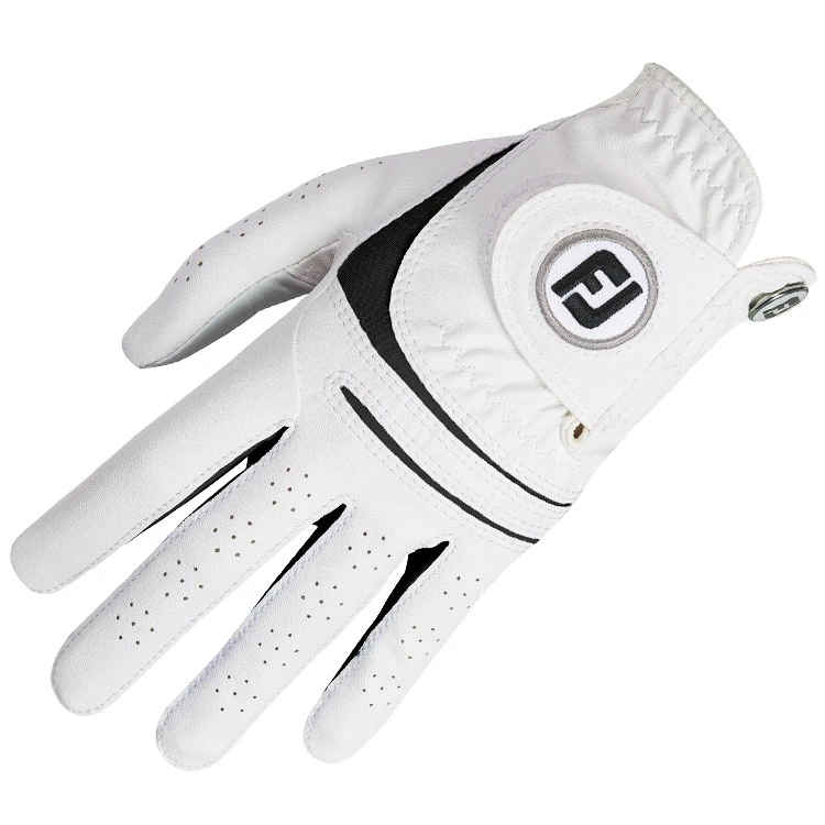 | FootJoy Ladies WeatherSof Golf Glove Greater Performance In All Weather Conditions The most technologically advanced microfibre golf glove for the golfer seeking the latest high-tech equipment. – FiberSof microfiber throughout the glove provides soft, leather-like feel and consistent fit – Soft Cabretta Leather palm patch and thumb offer a soft feel and added durability in key stress areas – Coolmax Lycra knuckle insert positioned across the knuckles – Provides a comfortable fit as the hand flexes – 3-Directional tab elastic closure ensures improved palm fit and comfort – Velcro closure with “FJ” logo |